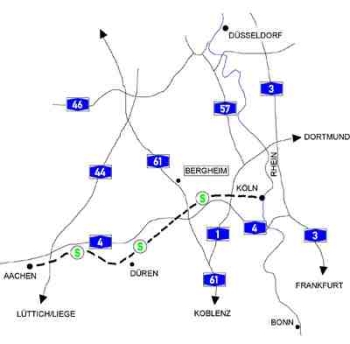 Koblenz. Fahren Sie bis zur Ausfahrt Bergheim Süd. Dort biegen sie rechts ab